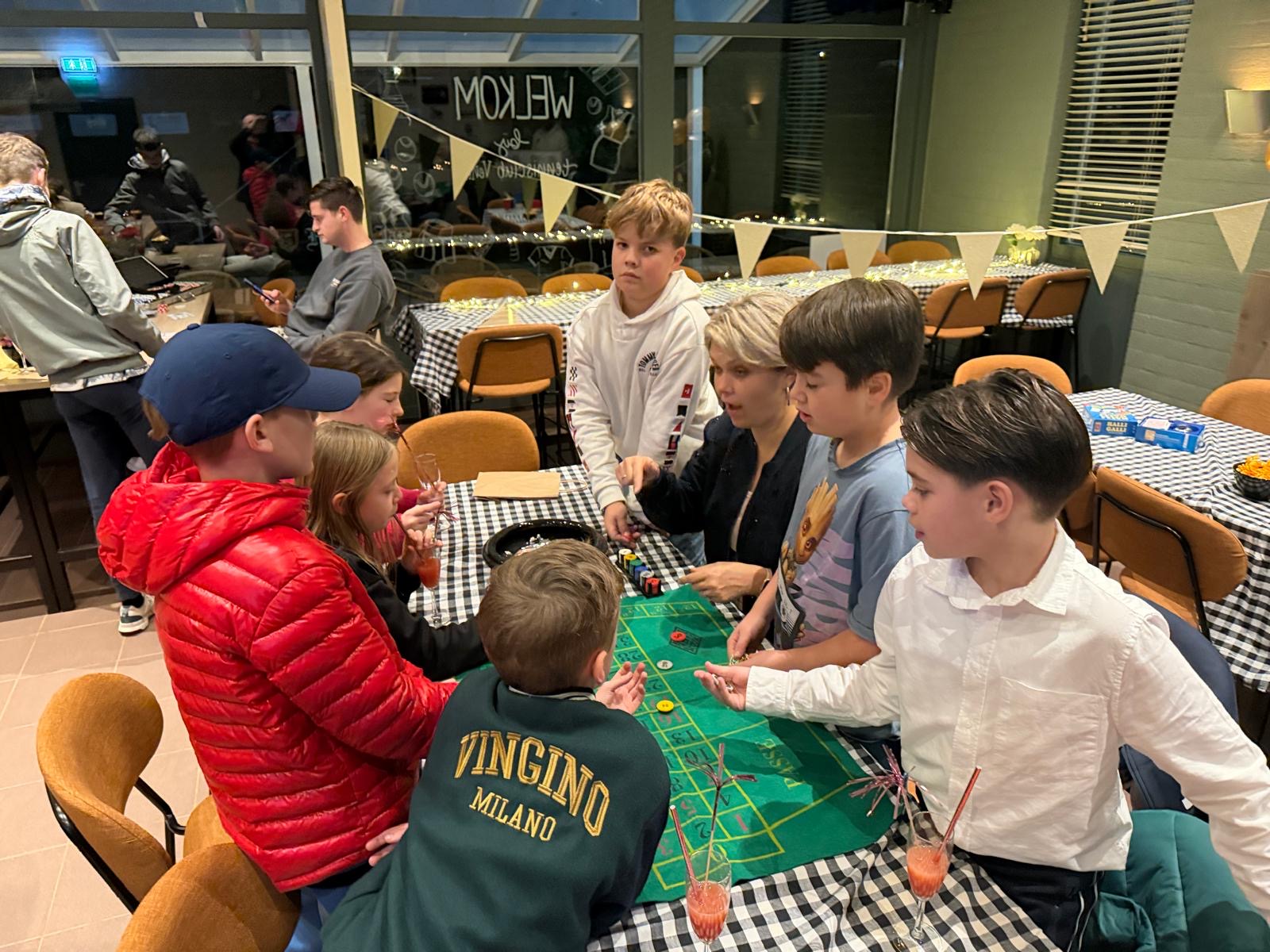 Na een warm welkom met mocktails gingen ze los. Er konden per spel fiches verdiend worden. Onze levende fruitmachine was hilarisch, er werd flink ingezet bij roulette en bij balletje balletje was het pittig om het de jeugd moeilijk te maken.